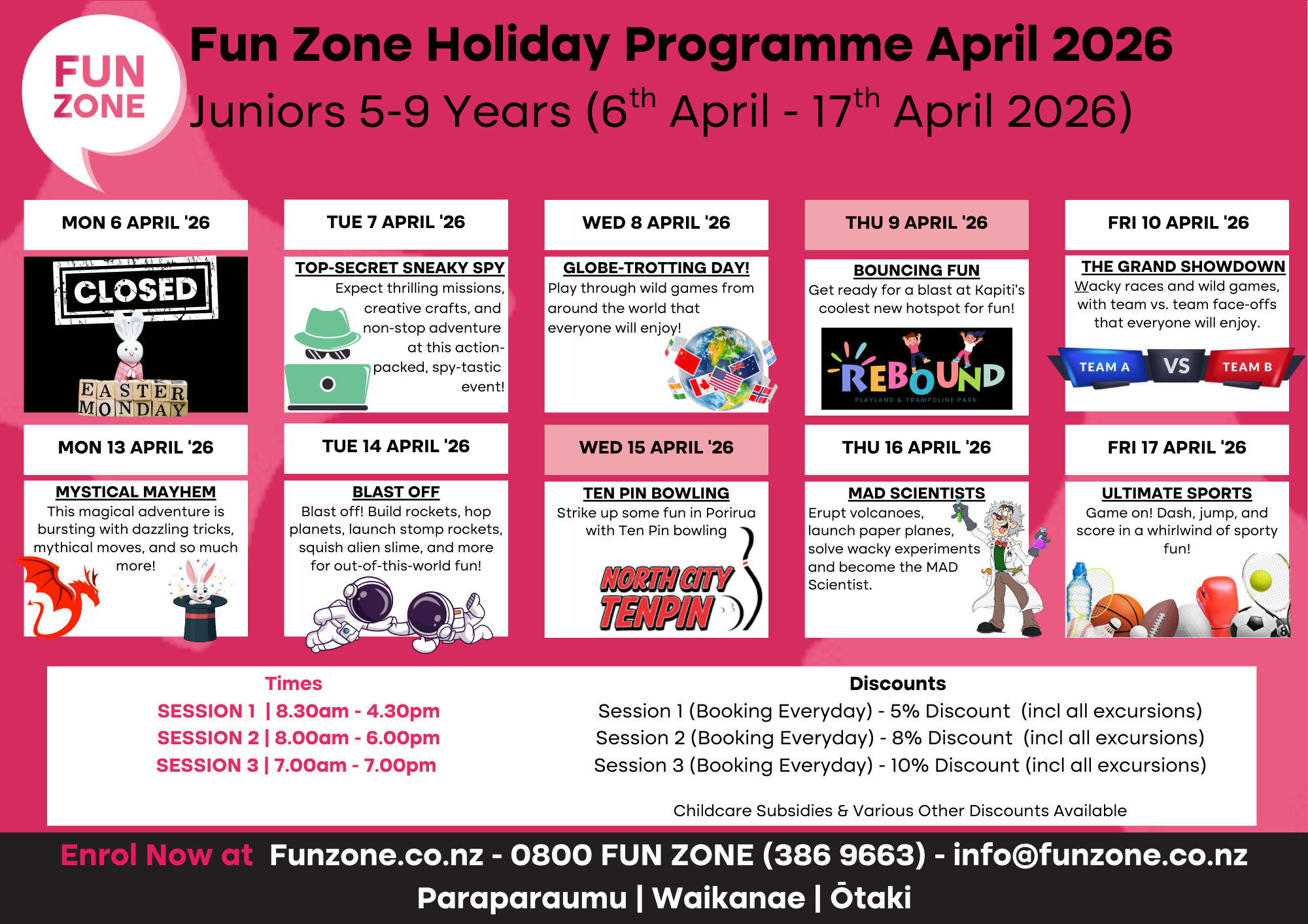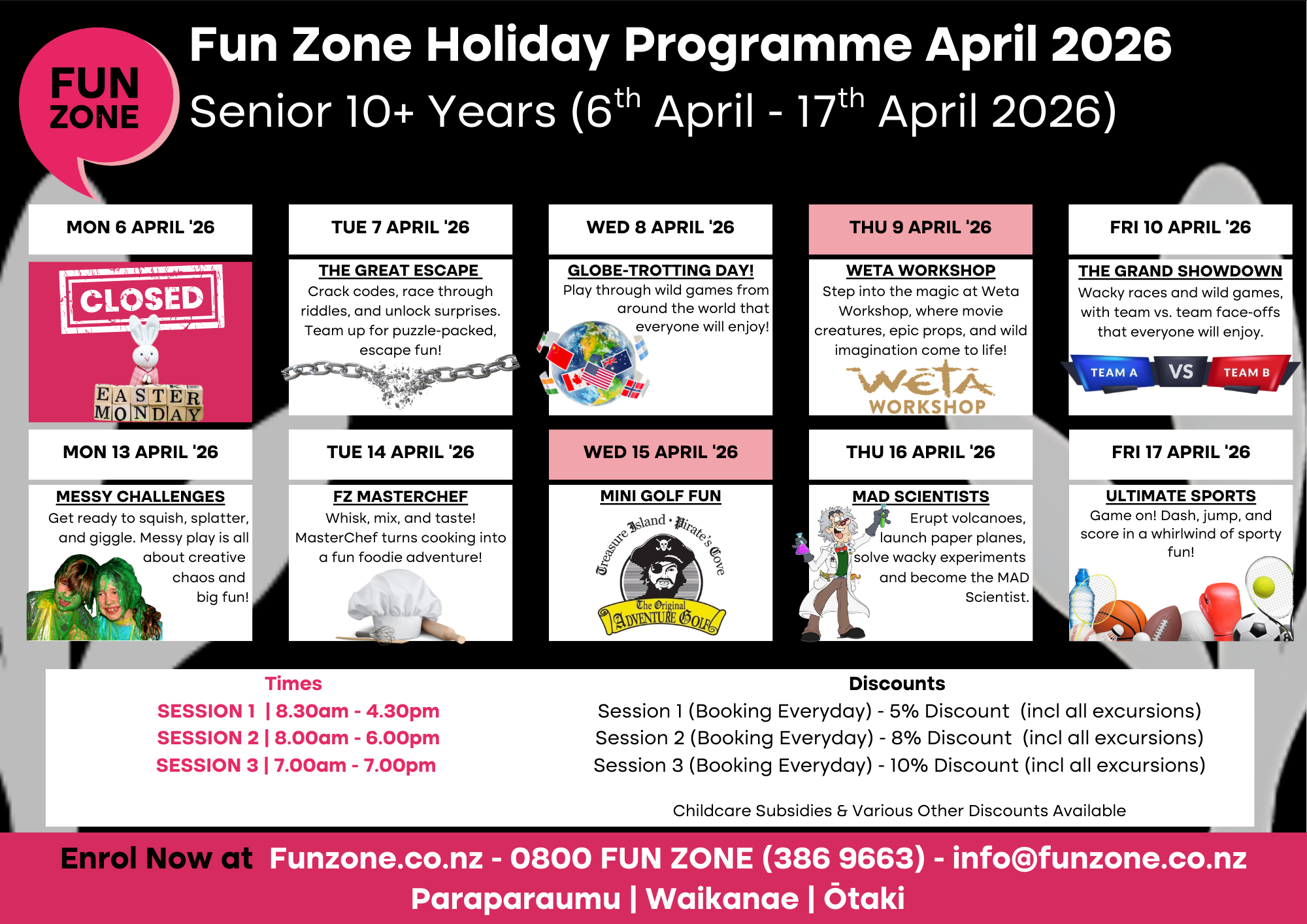 Are you scrambling to keep the kids entertained during the school holidays? Struggling to juggle office hours with family time? We can lend a hand. When it comes to school holiday programmes, we know our stuff. In fact, Fun Zone has been entertaining local Kāpiti kids during the school holidays for over 15 years.
